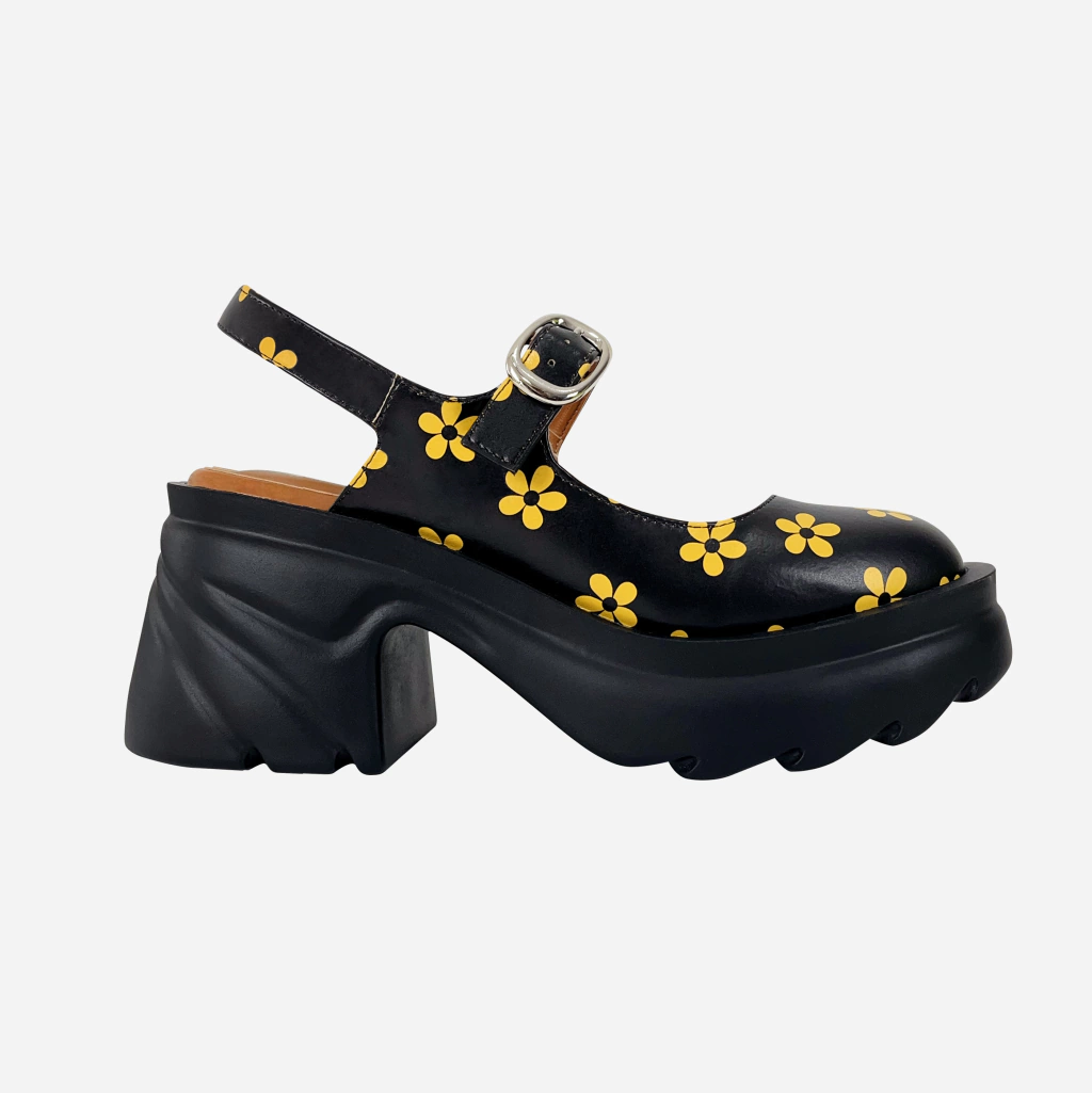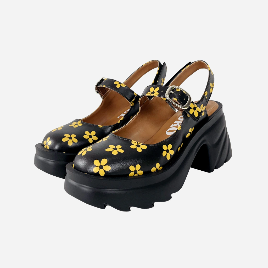 Com o bico fechado e palmilha fofinha, o modelo Kiki foi desenvolvido para ser sofisticado e prático através dos seus dois pontos de ajuste: um no peito do pé com fivela na cor prata e um no calcanhar com uso de velcro, que possibilita um ajuste personalizado. Fácil de calçar, Kiki foi desenvolvida em material sintético estampado floral e solado emborrachado, o que garante maior conforto e resistência. Tem salto de 8,5cm (aprox.) e pata de 4cm (aprox.).