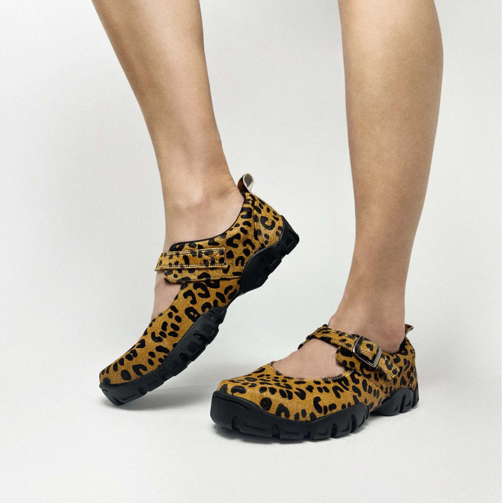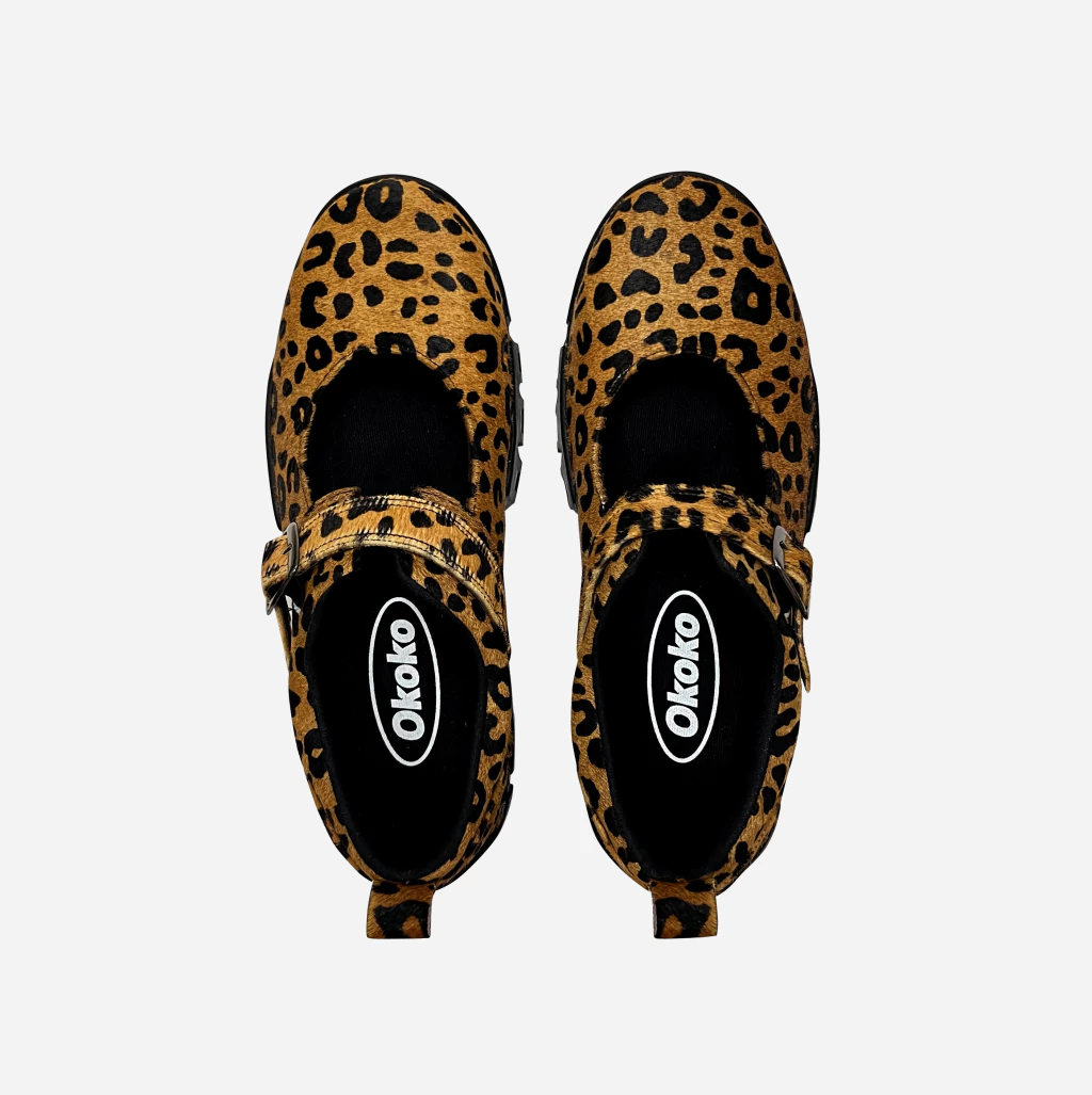 - Cabedal em Couro com Pelo na Estampa Onça.